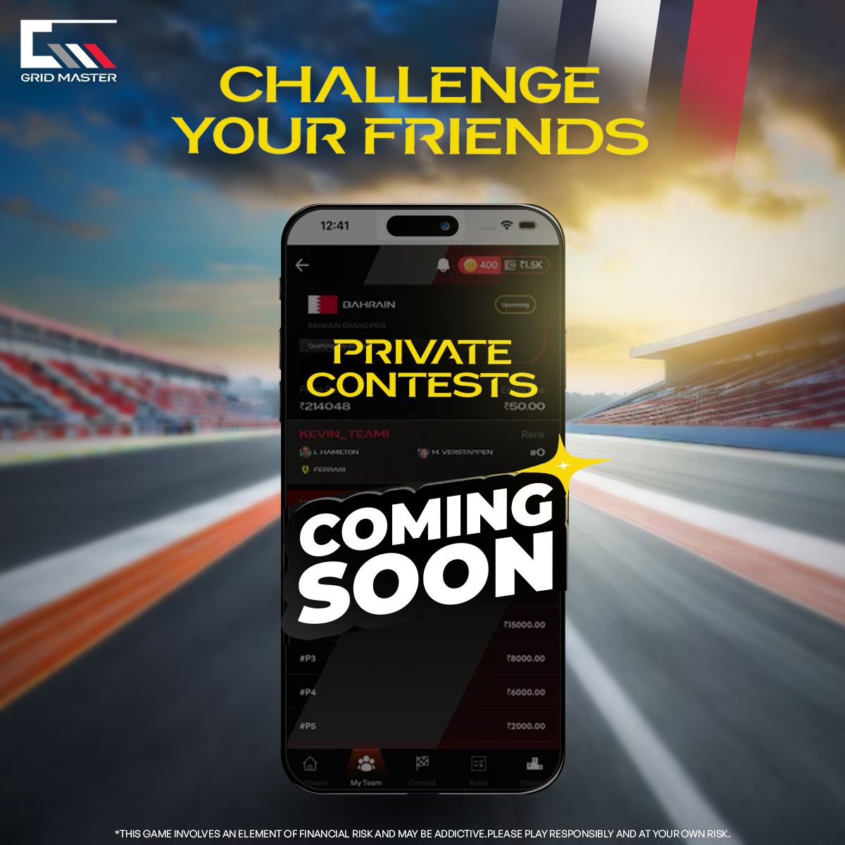 Soon, we'll be launching Private Competitions. Invite your friends to create a private pool and compete for cash prizes and the ultimate bragging rights as the top motorsport fan. Stay tuned for these exciting Grid Master events, coming soon exclusively on the Grid Master app!